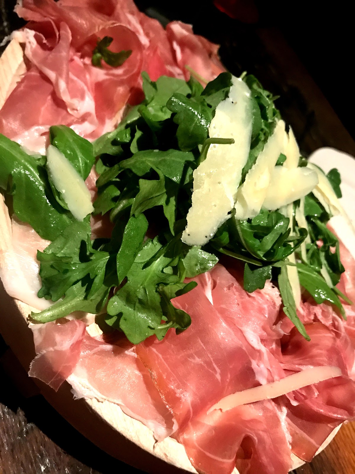 We also got the small prosciutto tasting ($11) because I’m a prosciutto addict. My favorite way to have it is wrapped around cantaloupe or a fresh pear. This was served with arugula and some fresh parm. I truly love prosciutto and – trust me – we finished every last bite – but it was a bit odd to just have a plate of meat with nothing to eat it with. I would rather have this served with fresh melon/pears to showcase the fantastic prosciutto. If you’ve never had prosciutto – it is truly amazing – almost a cheesy texture if you have the good stuff – so good!