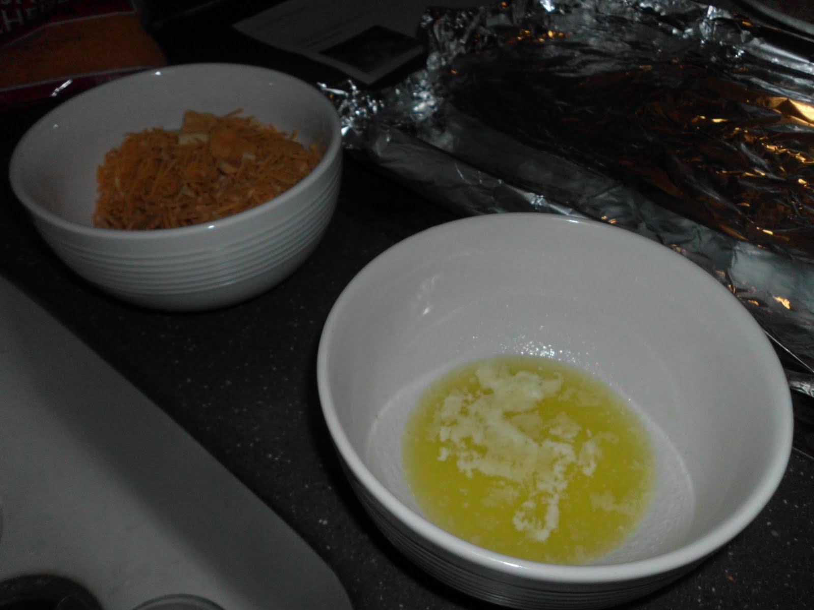Cheese & spices in one bowl – melted butter in the other. How can you go wrong?