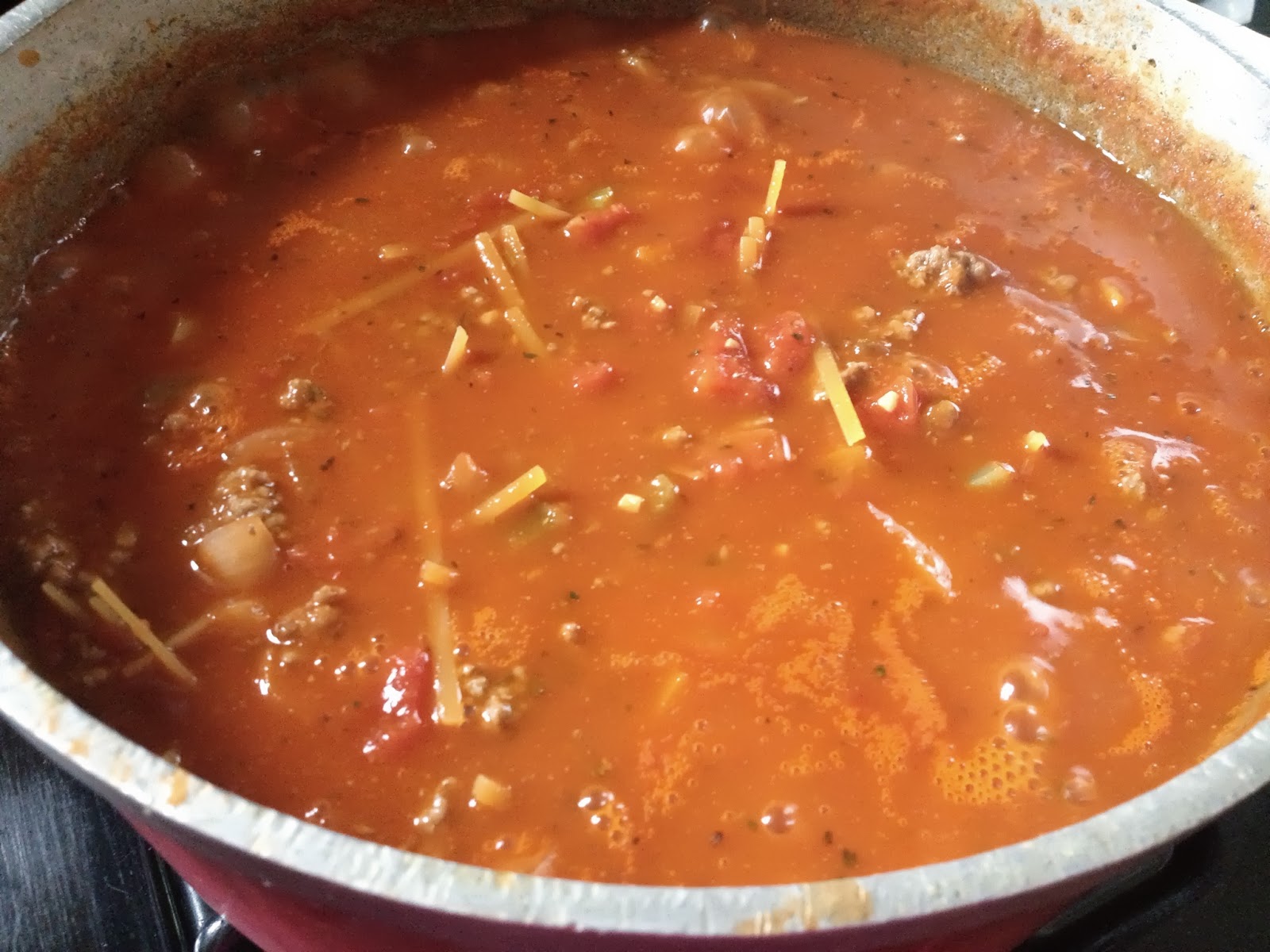 I found another great find on eMeals.com – Spaghetti Lover’s Soup! I think the thing I like is that the recipes remind me of Sandra Lee that does the Semi-Homemade – they’re easy recipes that take something familiar and then add some extras to it – to make it unique.