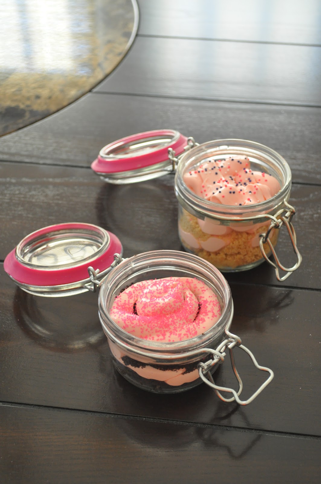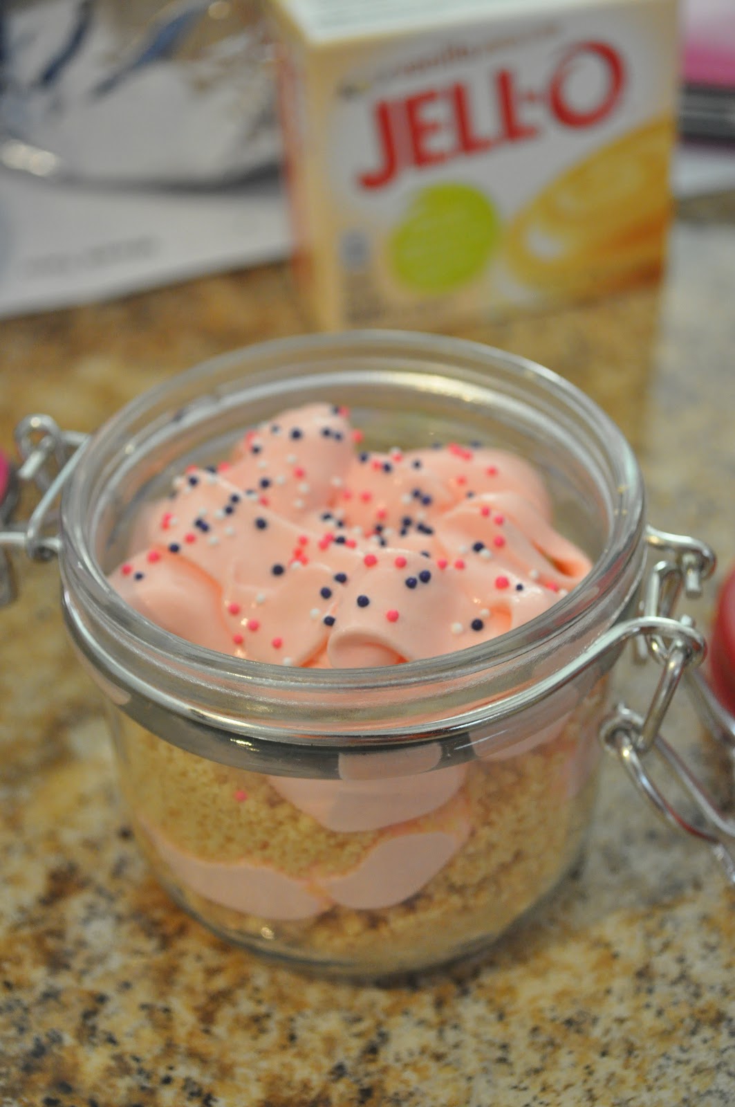 I did two layers in these super cute little jars and then topped them with fun sprinkles. I cannot tell you how difficult it was to seal these and put them in the fridge!!!! I wanted to eat them – but no – MUST SAVE FOR BOB & SHEILA!!!