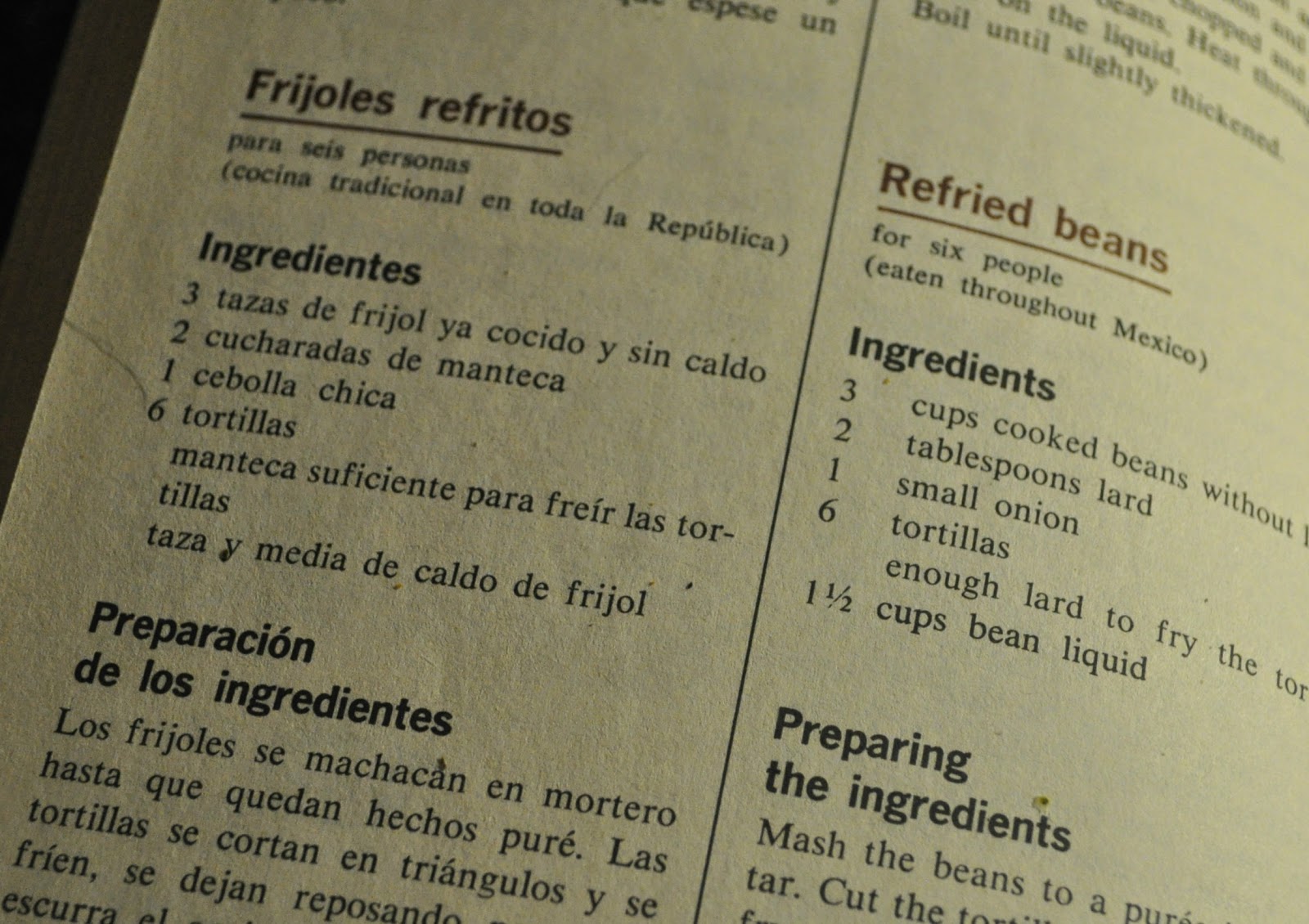 I decided to start out with refried beans. I love that the recipes are in Spanish & English. It’s kind of fun reading the Spanish and it reads like a church recipe book – not everything has measurements, some of it you have to figure out by looking at both, there are misspellings here and there. But you know it’s all going to be good!