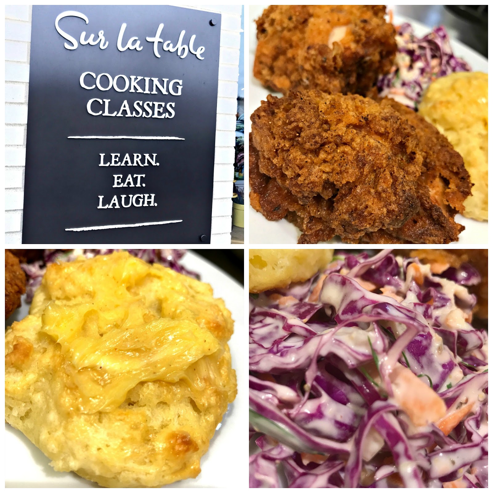 I like taking cooking classes and feel like I’m getting close to every one there is in town! (Tablespoon, Glendalia, Midwest Culinary, Bolly Bears) and now I can add Sur la Table to the list. I signed up for the Fried Chicken class with my friend and was ready to go!