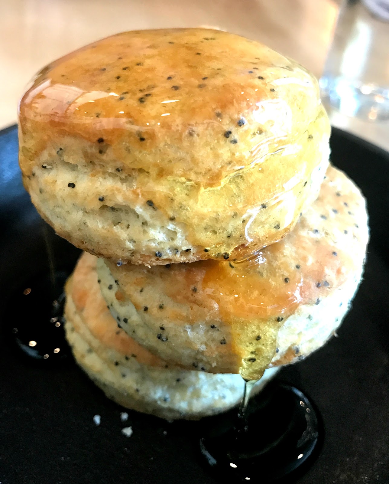 When Christian heard I was upstairs – he came bopping up from the kitchen with a hug and a gift! He was making these lemon poppyseed biscuits drenched in honey for an event that evening and let us try them. UM yes please! They were light with a touch of lemon and just plain delicious. #noleftovers